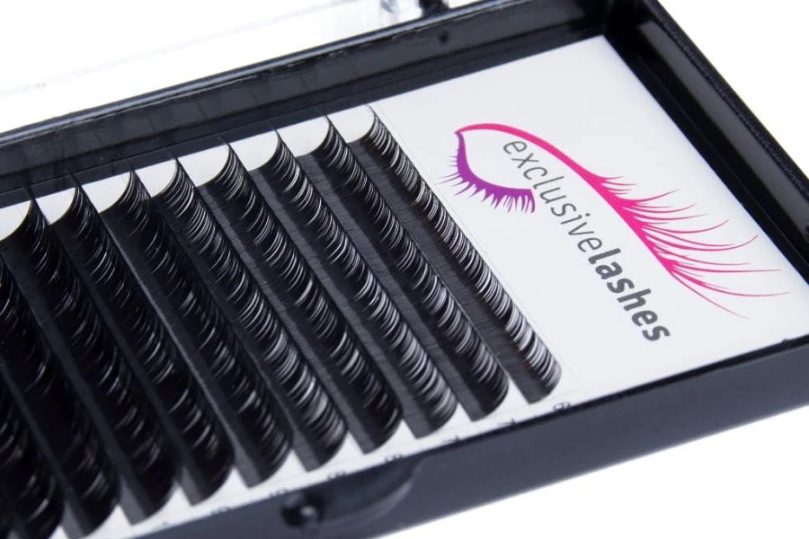Durch die Vielfalt der verschiedenen Techniken, Methoden, Längen, Stärken und Biegungen können wir jeder Frau die perfekt passende, typgerechte Wimpernverlängerung anbieten. Natürlich hat nicht jeder den gleichen Anspruch an den perfekten Augenaufschlag daher kann man indivudell entscheiden welche Länge, Stärke oder Biegung gewünscht ist. Unsere Marke arbeitet ununterbrochen an Produktverbesserungen und Innovationen, um den Kundinnen immer die höchst erreichbare Qualität anbieten zu können. Unsere Exclusive Lashes Wimpern haben einen tollen Glanz , sind kräftig, extrem haltbar und werden vorgeformt geliefert.